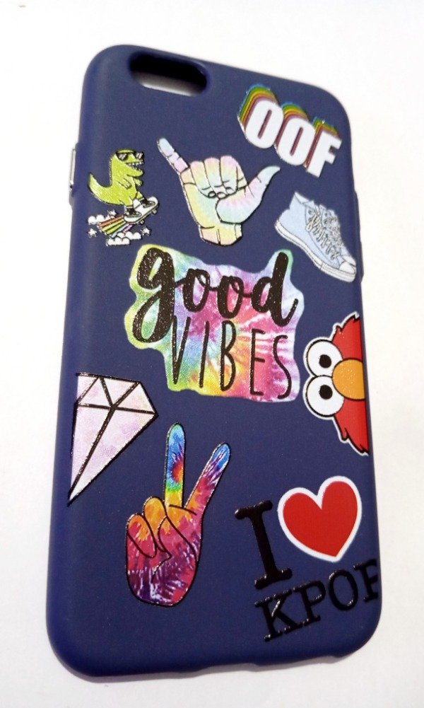 ¡Dale onda a tu celu con esta funda llena de personalidad! Con stickers brillantes estilo retro y frases como "Good Vibes", "I ❤️ Kpop" y más, esta funda es perfecta para fans de la cultura pop y los colores vibrantes 🌈