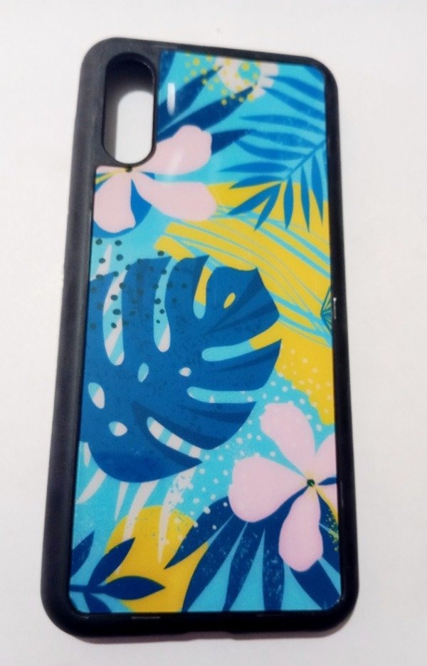 Dale un estilo único a tu Samsung A02 con esta funda estampada de diseño tropical vibrante. Con hojas en tonos azul, amarillo y verde, y flores rosadas sobre un fondo celeste, esta funda le da un toque alegre, veraniego y original a tu celular.