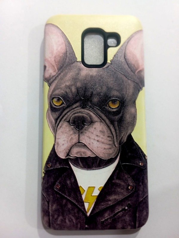 ¡Protección con actitud! Funda rígida con diseño de bulldog francés con campera de cuero, ideal para destacar tu estilo.