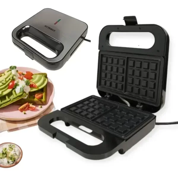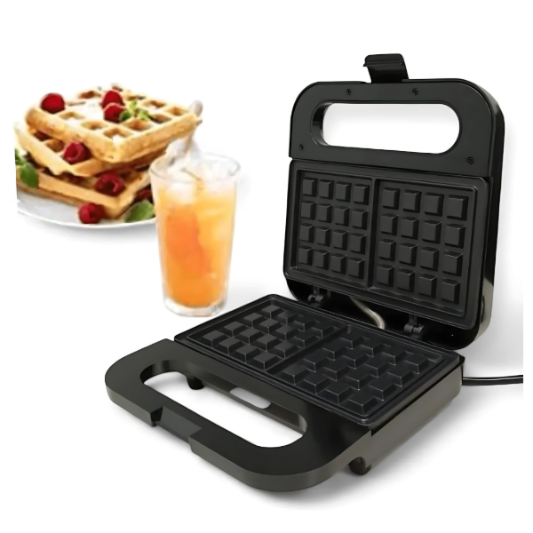 Con 750W de potencia ⚡, garantiza una cocción rápida y pareja, mientras que sus placas antiadherentes permiten desmoldar fácilmente y limpiar sin esfuerzo 🧼. Incluye luz piloto que indica cuando está lista para usar, y su diseño compacto y elegante se adapta a cualquier cocina.