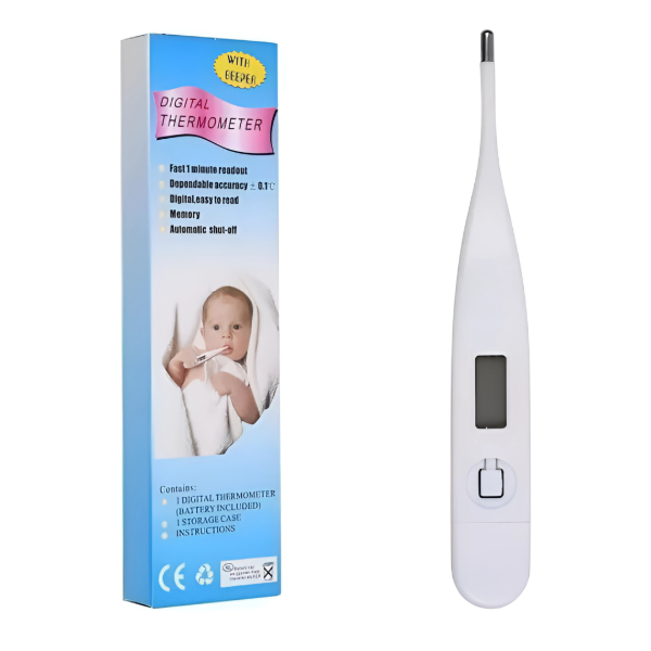 Controlá la temperatura de toda la familia 👨👩👧👦 con el Termómetro Digital LCD, diseñado para ofrecer lecturas rápidas, precisas y seguras. Su pantalla LCD facilita la lectura, mientras que el beeper de aviso 🔔 te indica cuando la medición finaliza.